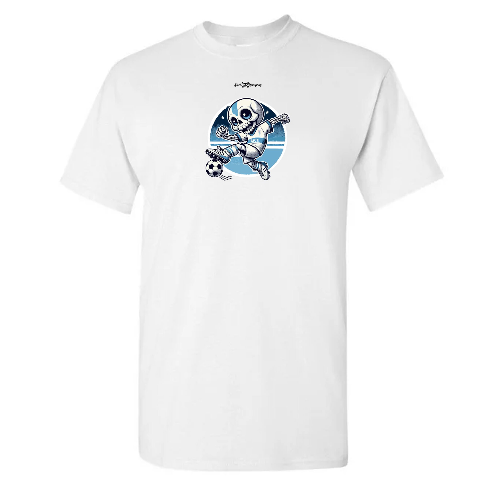 La polera “El Cruzado Inmortal” de Skxll Company es el tributo perfecto para los seguidores apasionados de la Universidad Católica. Este diseño frontal a todo color presenta a un esqueleto futbolista que personifica la elegancia y fuerza del equipo cruzado, con el balón en movimiento y un fondo que destaca los icónicos colores blanco y azul. Cada detalle del diseño refleja la grandeza y energía de uno de los clubes más emblemáticos del fútbol chileno.